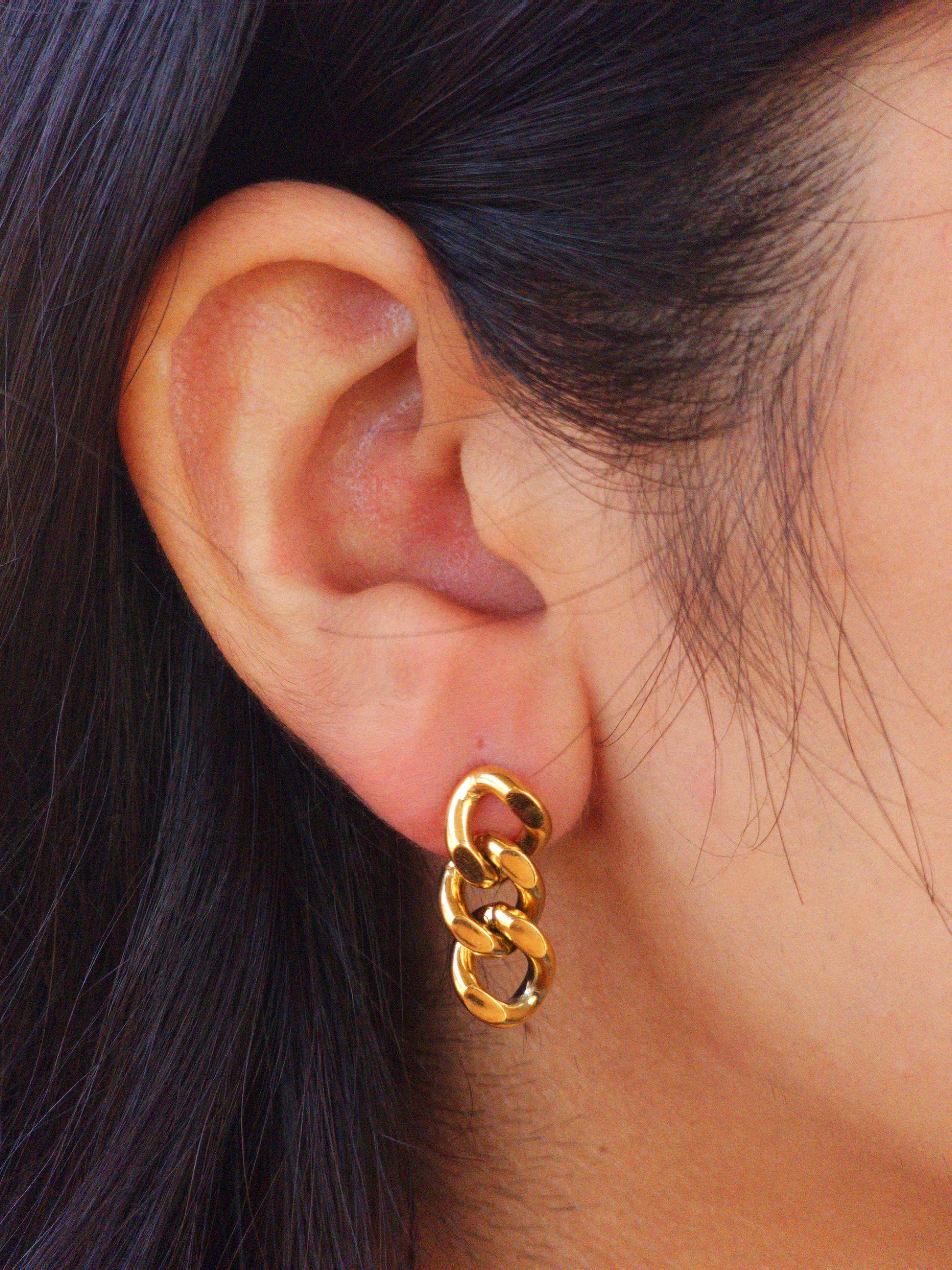 Elevate your style with our Chain Drop Stud Earrings! Made with 18k gold plating and stainless steel, these earrings are not only chic but also water resistant. Perfect for any occasion, these earrings bring both fashion and practicality to your jewelry collection.
